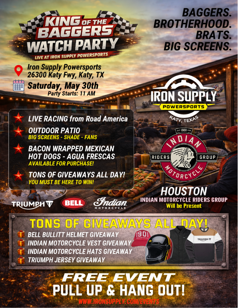We’re bringing the King of the Baggers action straight to Iron Supply Powersports and turning our dealership into a full-on outdoor race day hangout. If you’ve never watched bagger racing surrounded by real riders, real bikes, and real energy… this is your moment.