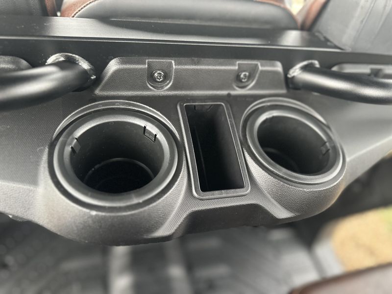 • Room for Six: Two full bench seats. Water-resistant materials. Built-in bolstering. Fold-down center console with armrest and cup holders. Bring the whole crew—and keep them comfortable all day.